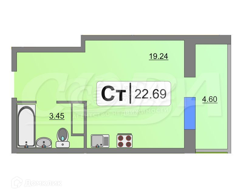 Общая площадь 23 м2