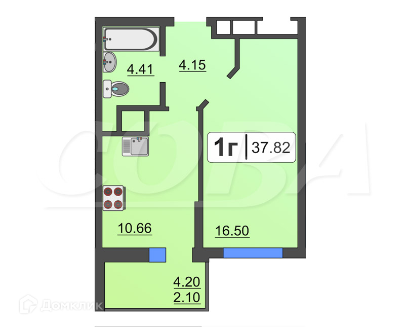 Общая площадь 40 м2