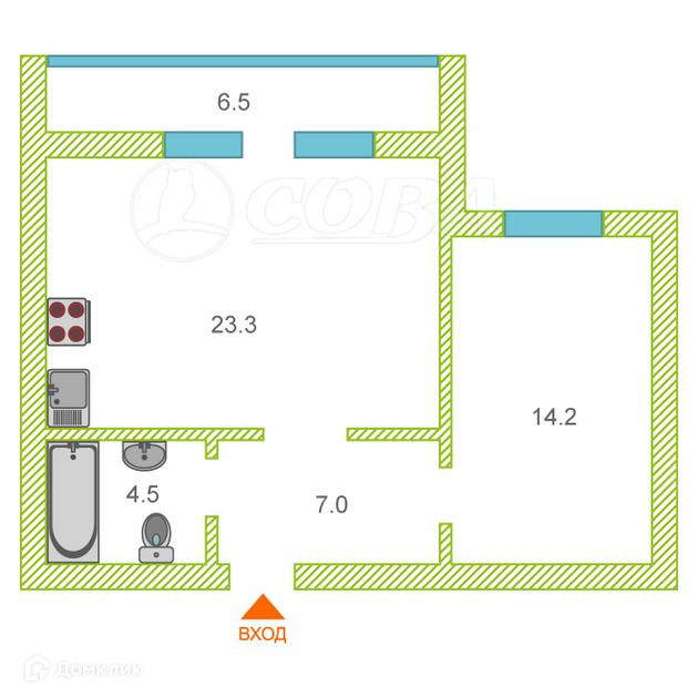 Общая площадь 49 м2