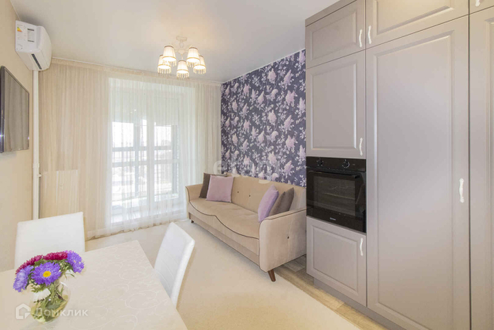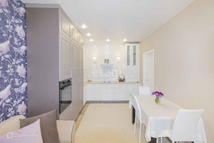 В кухне-гостиной есть балкон, с панорамным остеклением и восхитительным видом на город (мост влюблённых, набережная, Заречная часть города, центр). Установлена сплит-система, уникальный кухонный гарнитур сделанный на заказ в стиле современной классики, с множеством мест для хранения, встроенным холодильником, духовым шкафом, варочной панелью, вытяжкой, буфетом с подсветкой, отсутствием навесных шкафов, что создаёт неповторимый стиль зоны приготовления еды.