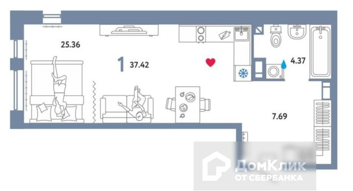 Жилая площадь 25.36 м2