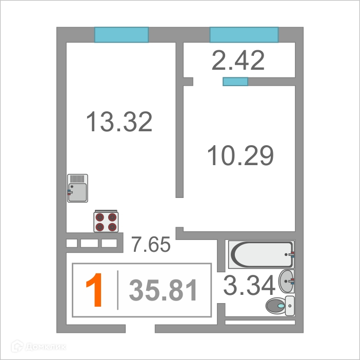 Общая площадь 35.9 м2