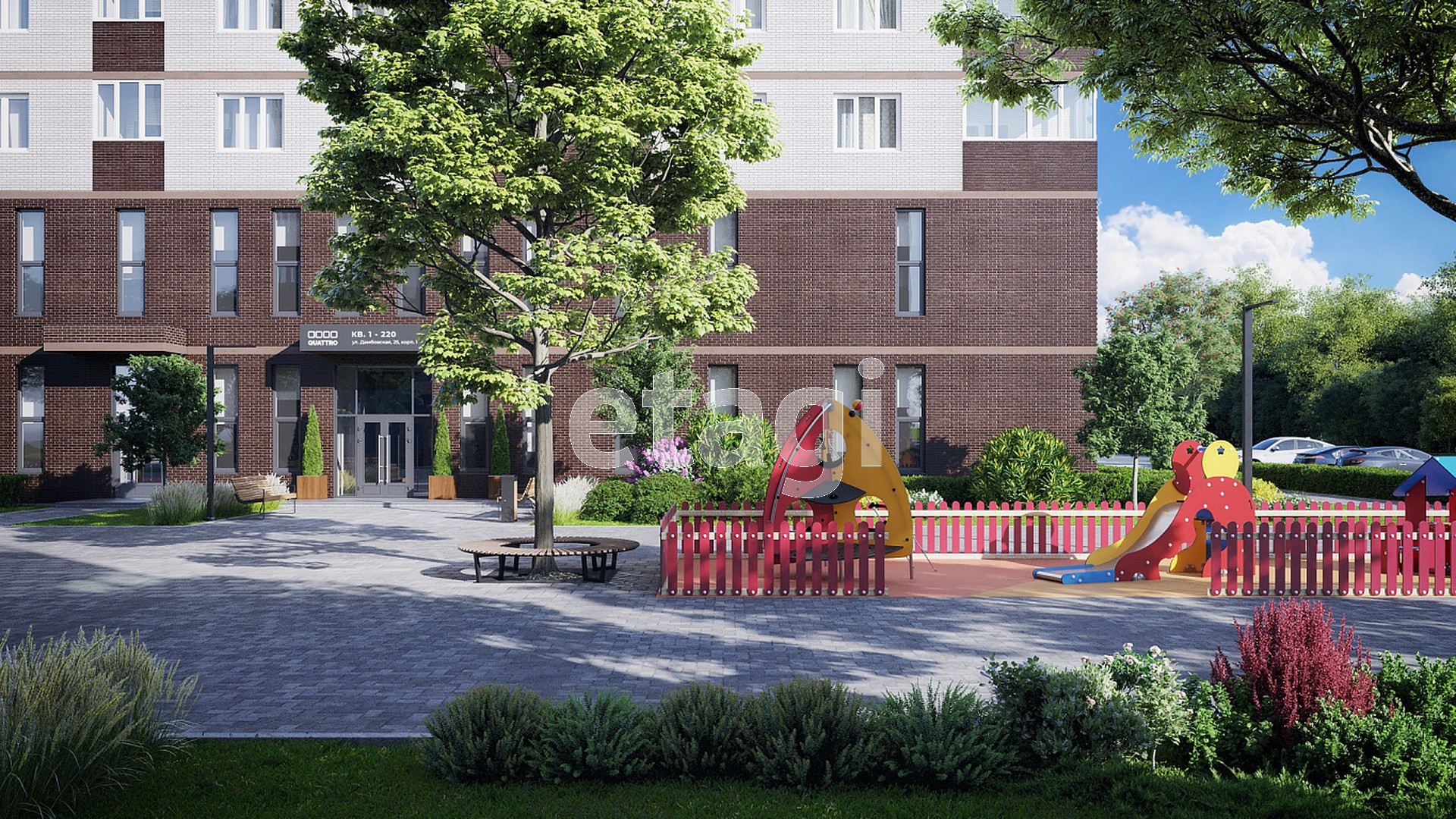 Также в комплексе планируют построить крытый многоуровневый паркинг, зону отдыха, теннисный корт, детские и спортивные площадки. Инфраструктура: В 10 минутах ходьбы находятся детский сад №36 и чуть дальше детский сад №62. В 15 минутах от комплекса Гимназия №5 и №15. В шаговой доступности торговые центры «Левша», «Юна», «Тура» и «Галактика». В пяти минутах езды от ЖК «QUATTRO» одна из главных транспортных артерий города – ул. Мельникайте, до центральной улицы Республики 5 минут на автомобиле и Вы в центре города.