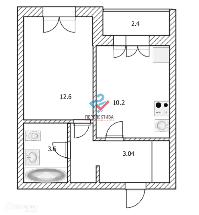 Общая площадь 37 м2