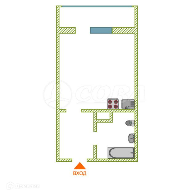Квартира студия, 15.7 м2, этаж 2 / 16, на продажу в Тюмени, улица Новосёлов, 117