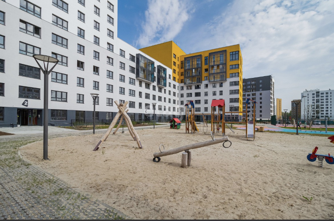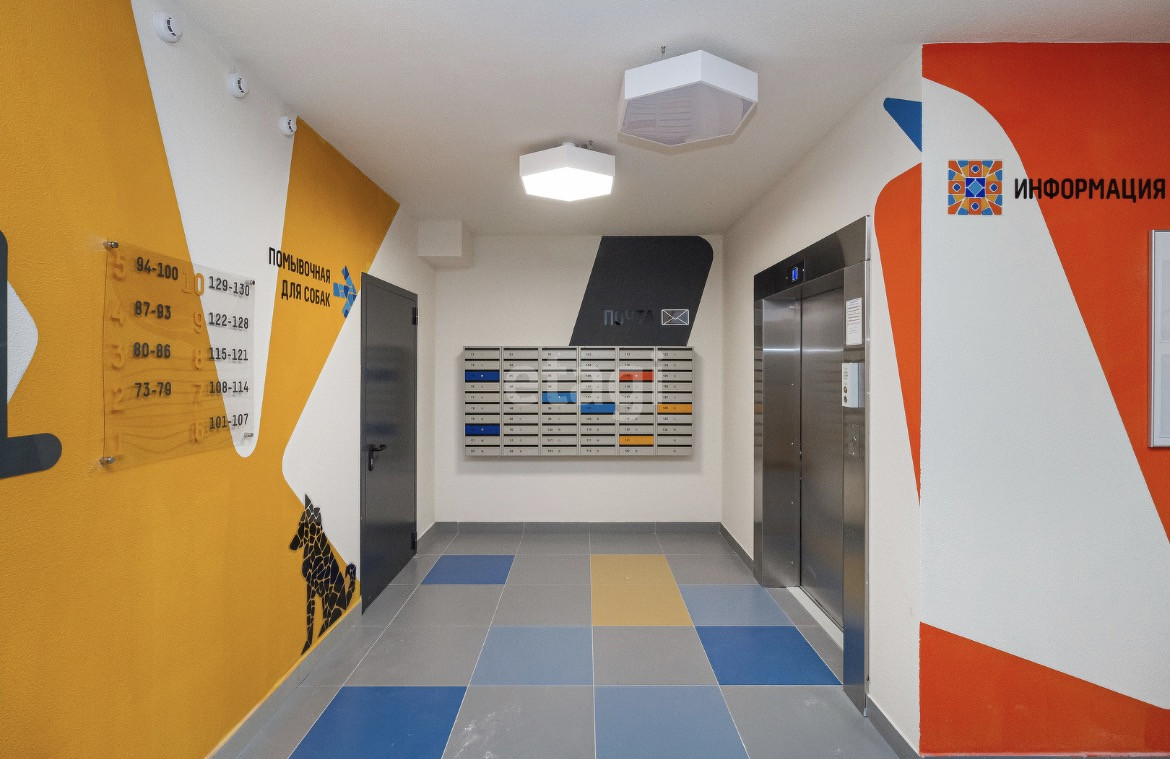 Территория жилого комплекса закрыта, двор без машин, оснащение двора в сдержанном европейском стиле с разноуровневой подсветкой, яркое прорезиненное покрытие детских и спортивных площадок. Безбарьерный вход в подъезд с панорамным остеклением. На первом этаже оборудована колясочная и комната для мойки собак.