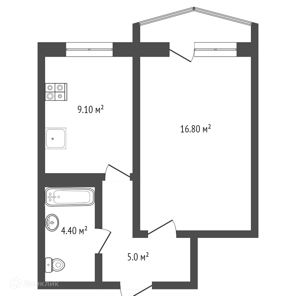 1-комнатная квартира, 35.3 м2, этаж 6 / 16, на продажу в Тюмени, улица Героев Космоса, 21