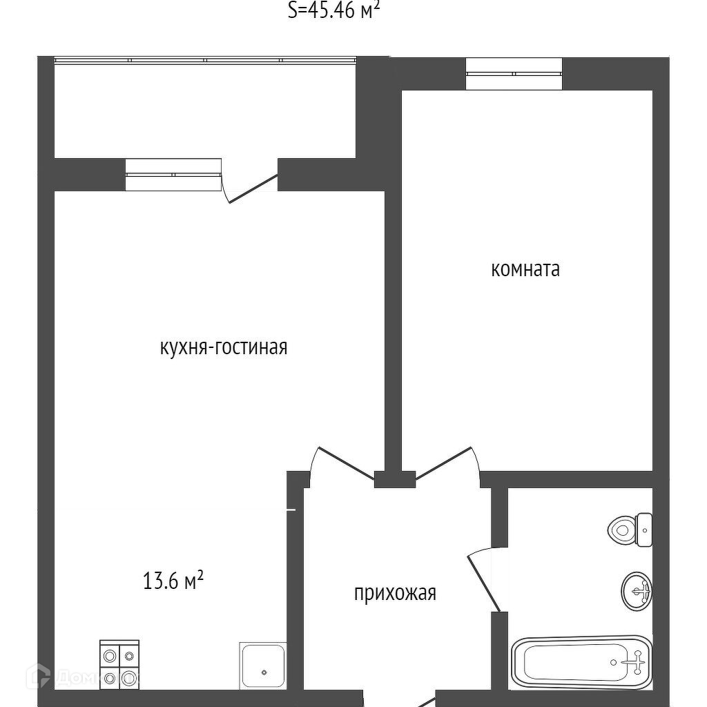 Отделка квартиры: цементно-песчаная штукатурка в санузлах и гипсовая штукатурка в комнате и кухне.