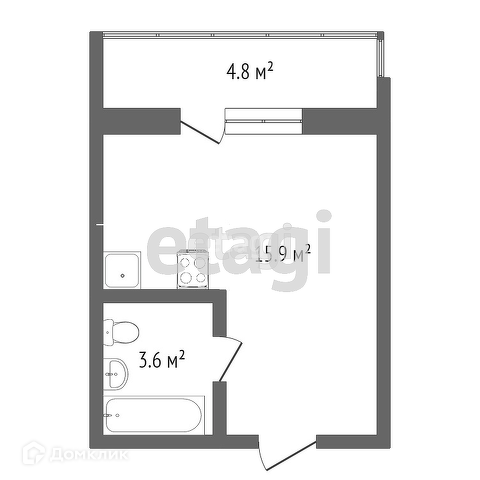 Квартира студия, 21.69 м2, этаж 4 / 4, на продажу в Тюмени