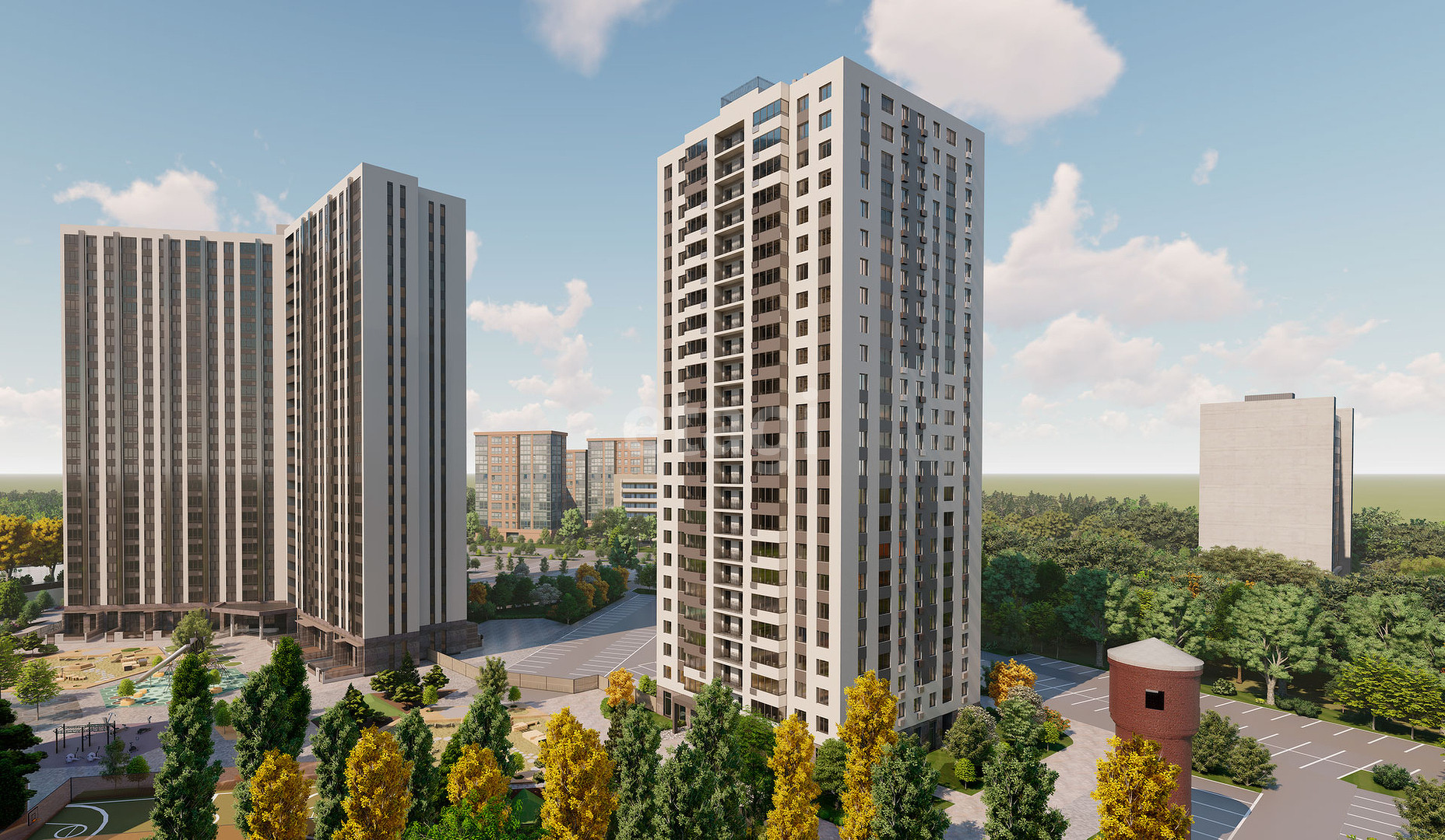 Во дворах разместятся игровые площадки для детей разного возраста, спортивные площадки, а также разнообразные зоны отдыха для всей семьи. Территория комплекса будет открытой, но внутри ЖК застройщик планирует закрытую детскую площадку, доступ к которой будет только у жителей дома. Также проектом предусмотрено ландшафтное зонирование придомовых территорий.