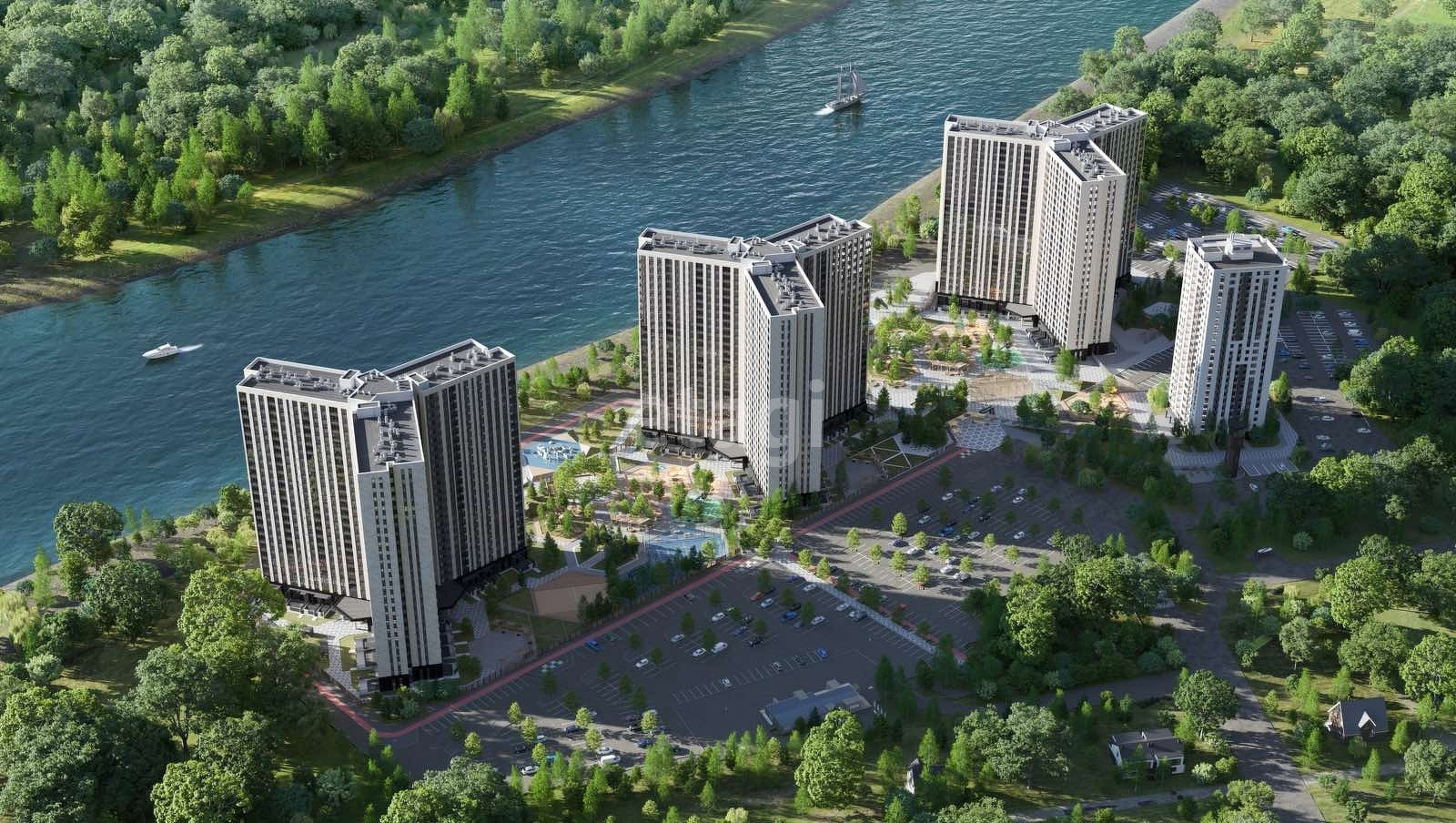 Дома имеют сложную динамичную композицию. Каждое здание в плане представляет собой рисунок трилистника, тремя лучами раскрывающегося в пространстве. Распахнутые крылья зданий визуально открыты на реку и историческую часть города.