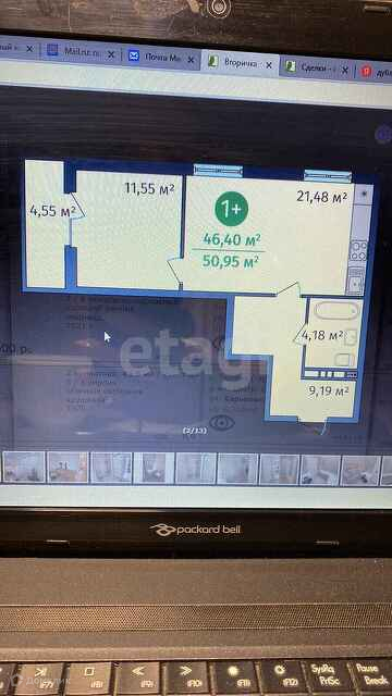 1-комнатная квартира, 46.4 м2, этаж 3 / 9, на продажу в Тюмени, 2-я Луговая улица, 22к3