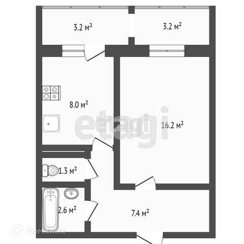 Общая площадь 35.5 м2