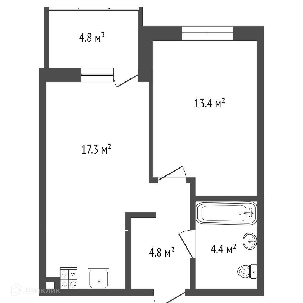 Общая площадь 40.08 м2
