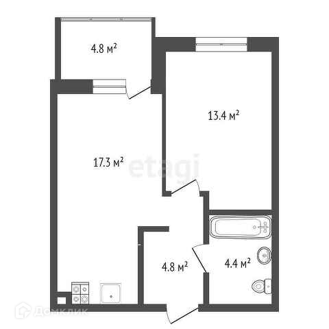 1-комнатная квартира, 40.08 м2, этаж 2 / 8, на продажу в Тюмени, улица Николая Глебова, 3с8