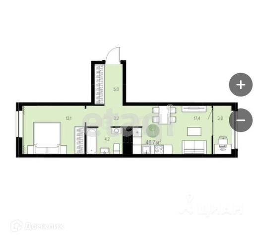 Общая площадь 46.72 м2