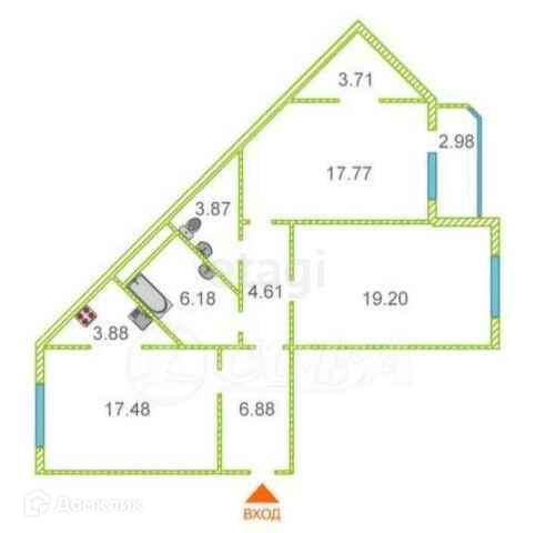 Площадь кухни 17.48 м2