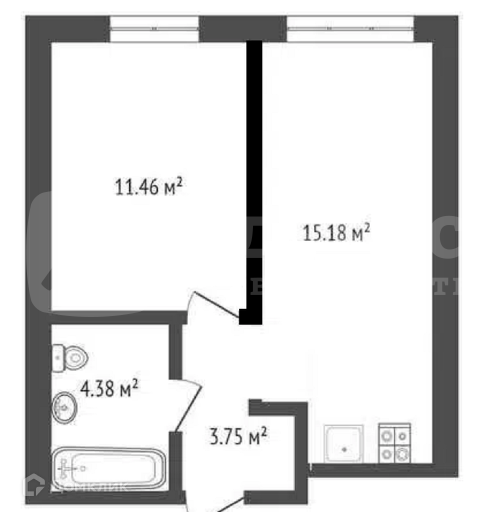 Жилая площадь 11.46 м2