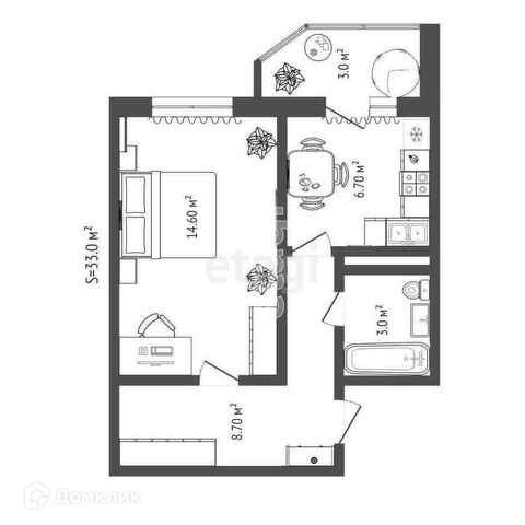 Общая площадь 33 м2