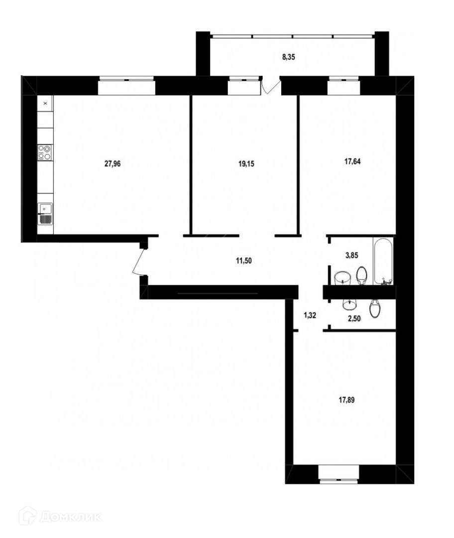 Общая площадь 96.5 м2