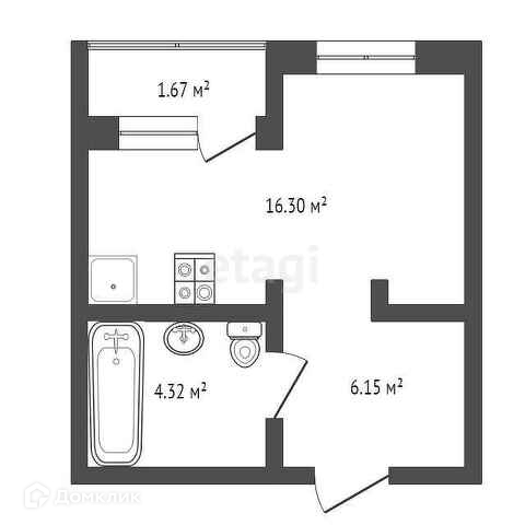 Общая площадь 28.5 м2