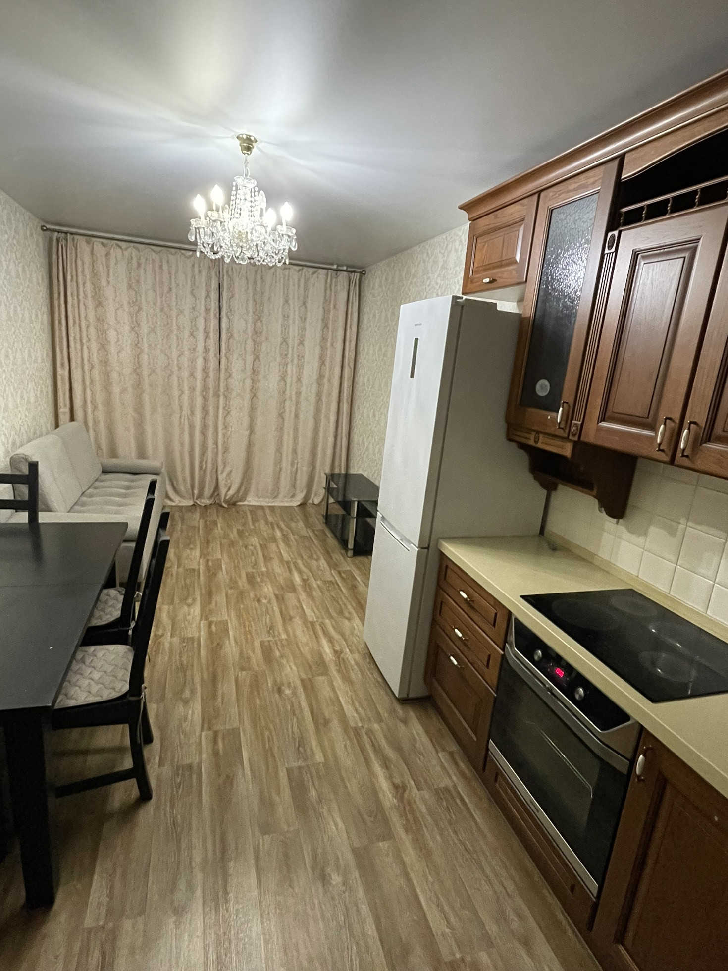 Дополнительно к ремонту остается кухонный гарнитур из массива дуба с качественной фурнитурой, большой шкаф - купе в коридоре и встроенная мебель в ванной.