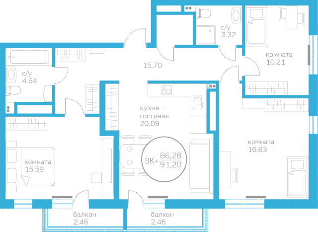 Общая площадь 86.28 м2