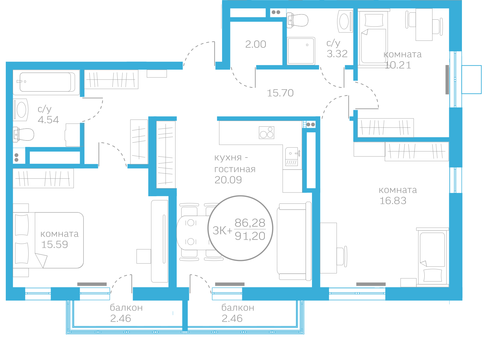 Общая площадь 86.28 м2