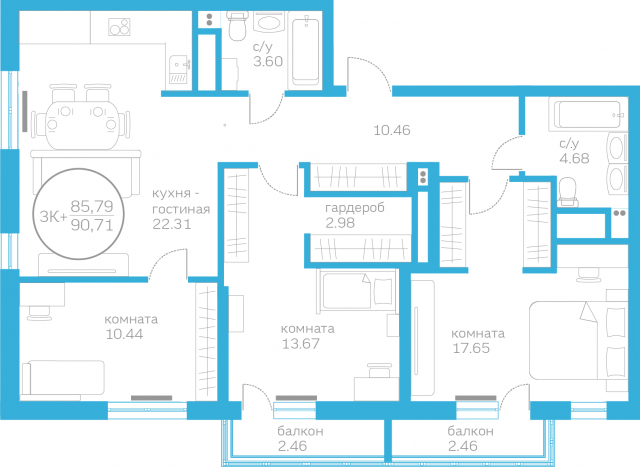 Общая площадь 85.79 м2