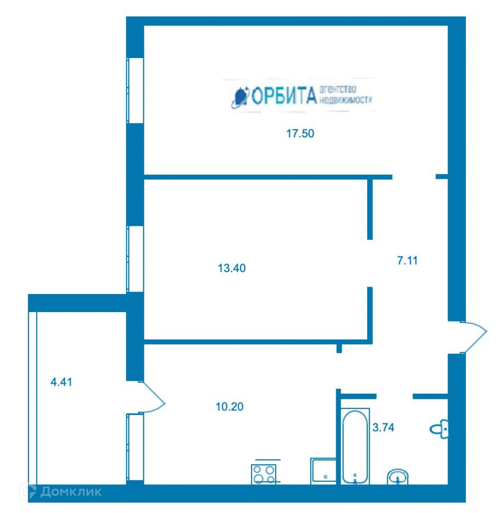 Общая площадь 54 м2