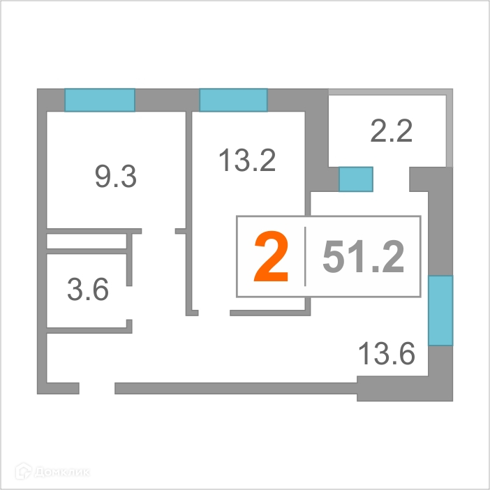 Общая площадь 51 м2