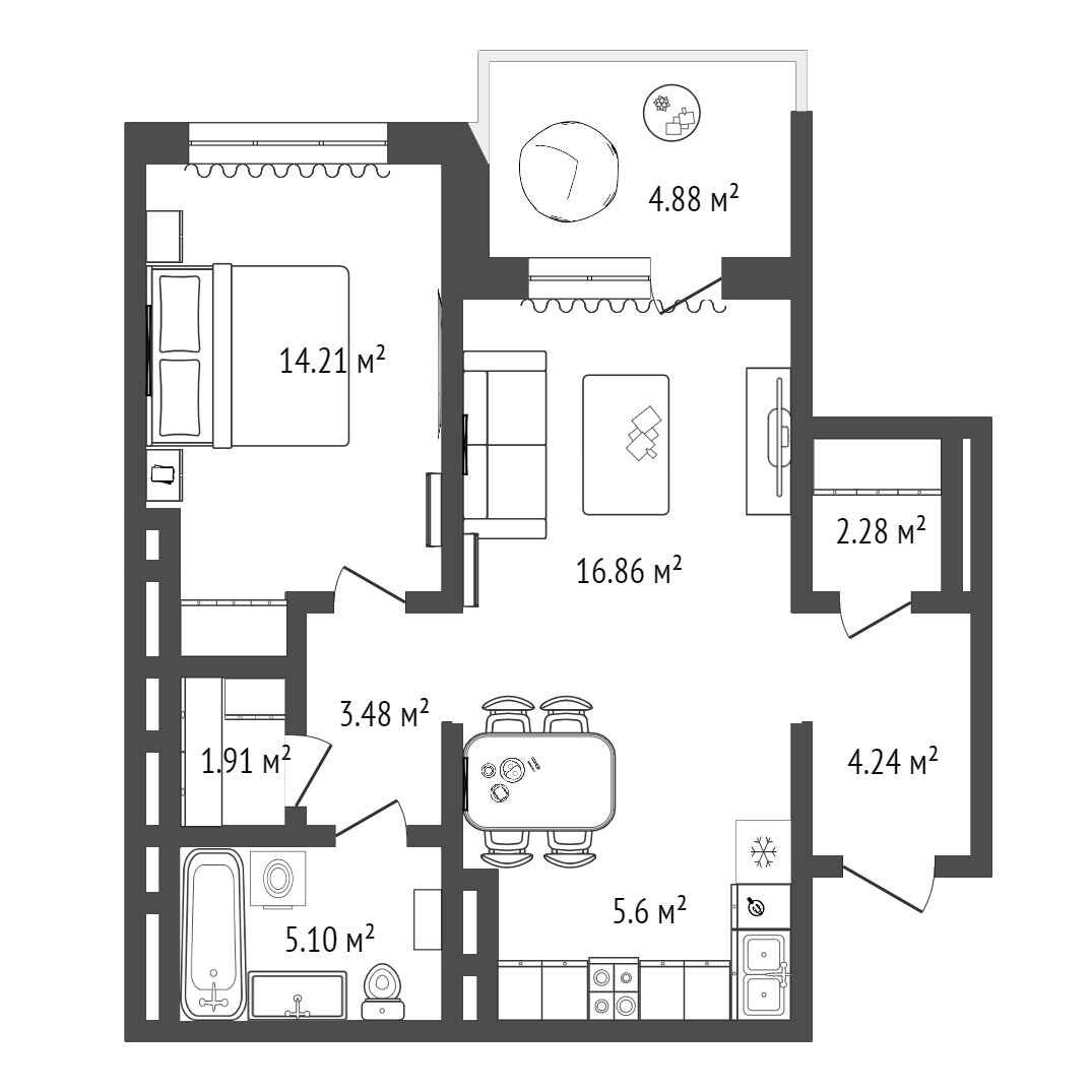 Общая площадь 58 м2