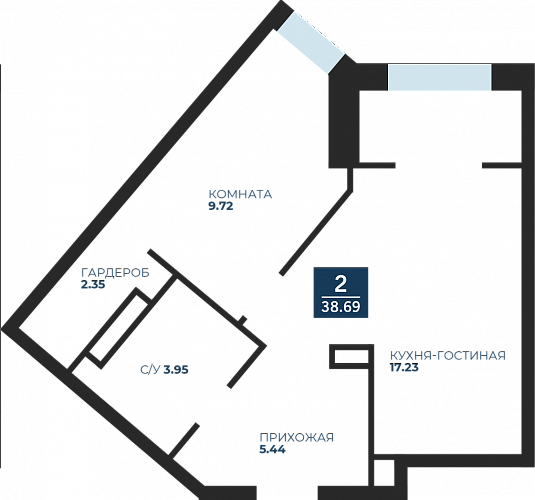 Общая площадь 38.6 м2