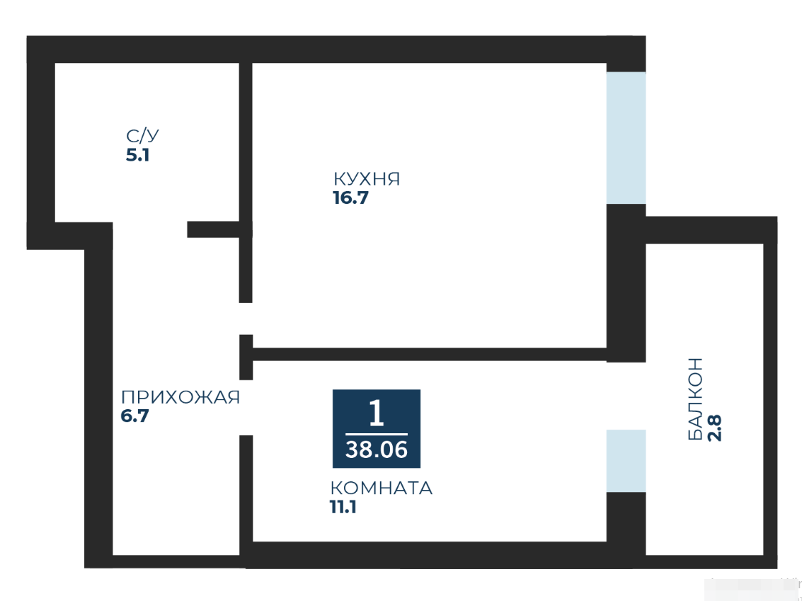 Общая площадь 38 м2
