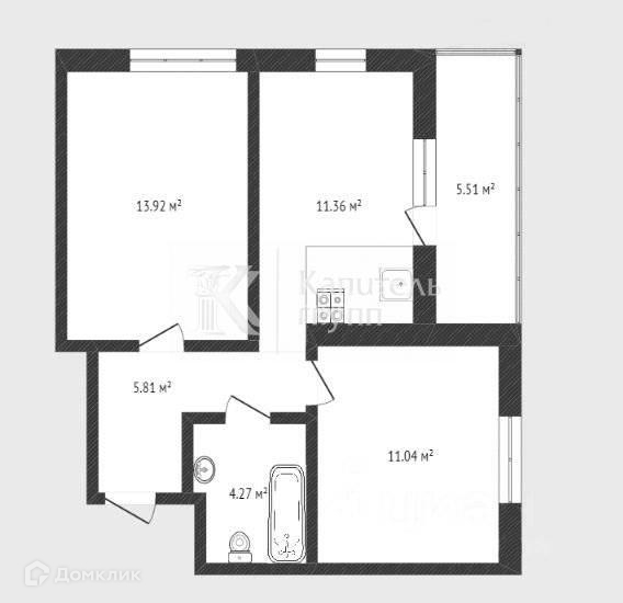 Квартира с предчистовой отделкой. Планировка на фото.
