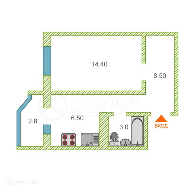 Общая площадь 33 м2