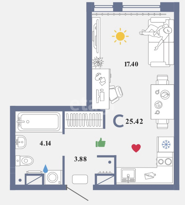 Общая площадь 26 м2
