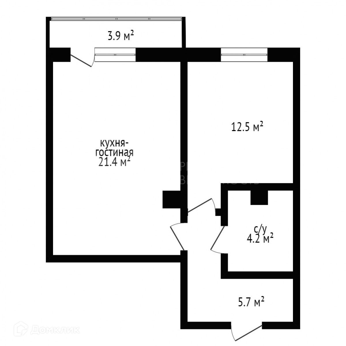 Общая площадь 43.8 м2