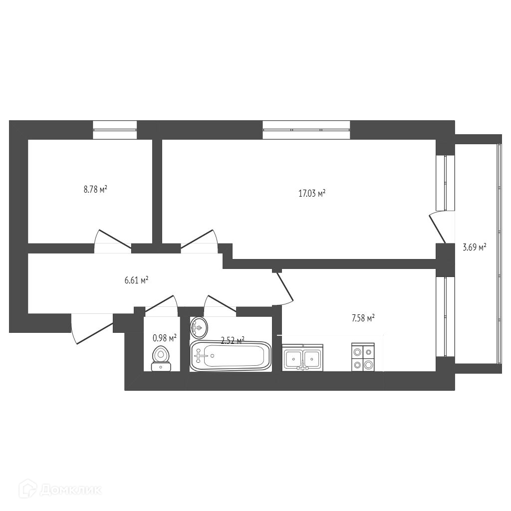 Общая площадь 43.5 м2