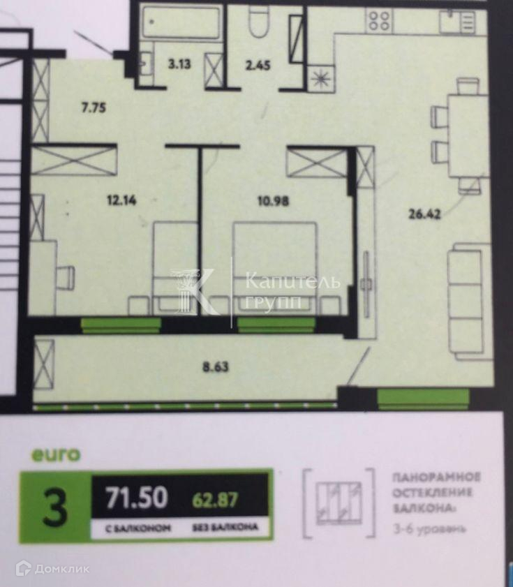 Общая площадь 71.5 м2
