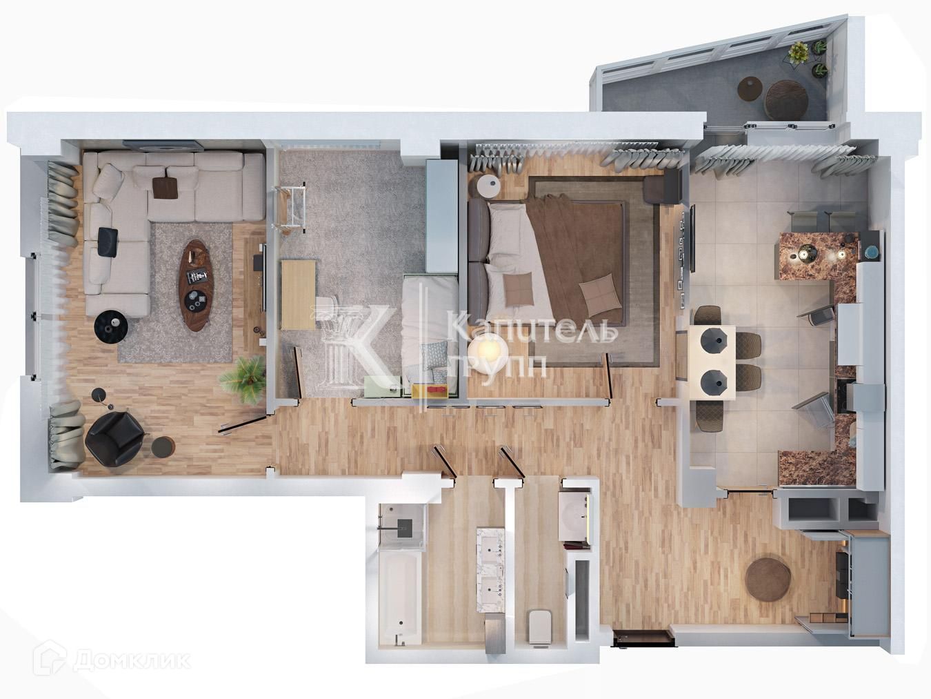 Двухкомнатная квартира с просторной планировкой. Квартира продается с улучшенной черновой отделкой.