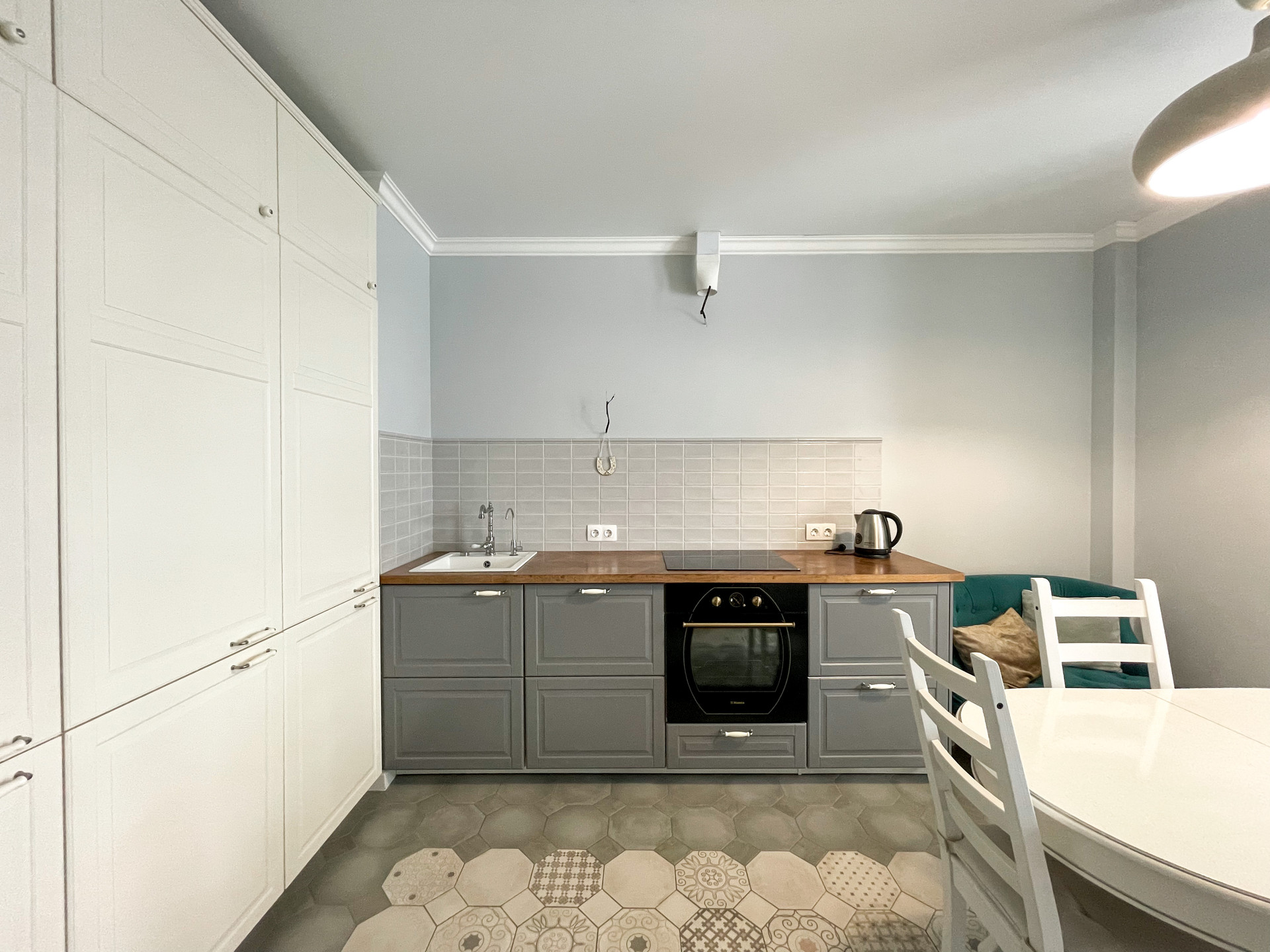 Выполнен современный лаконичный ремонт с использованием качественных материалов,