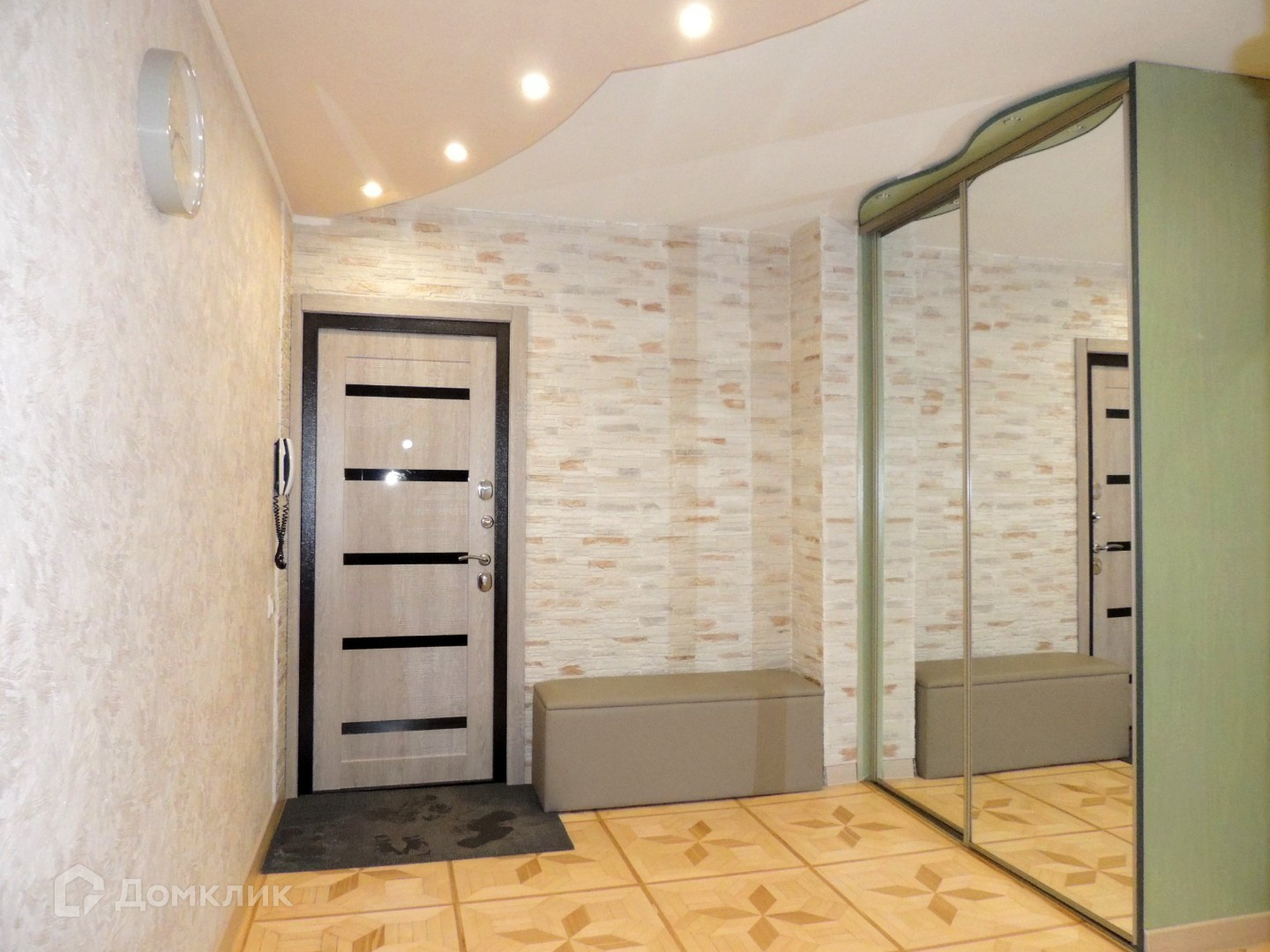 В квартире сделан свежий ремонт (в 2022 году) Поменяны все двери, в том числе входная. Пол кухни плитка-керамогранит, в коридоре и спальне натуральный паркет, гостиная-ламинат.