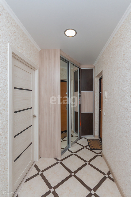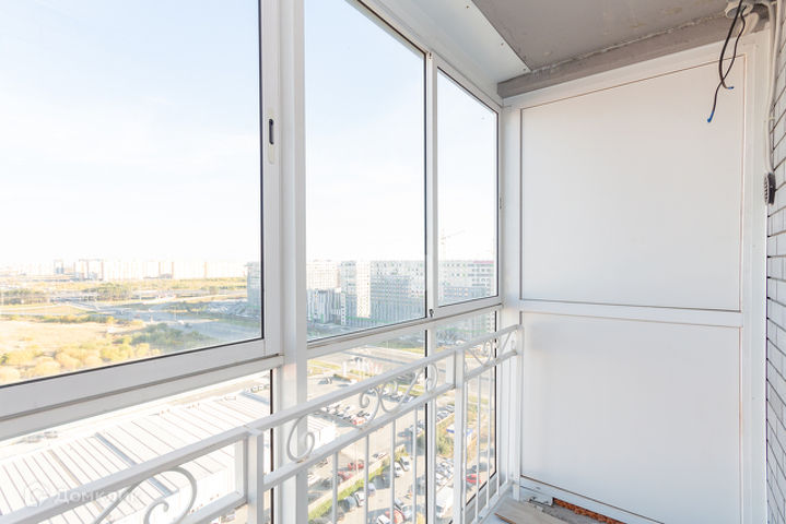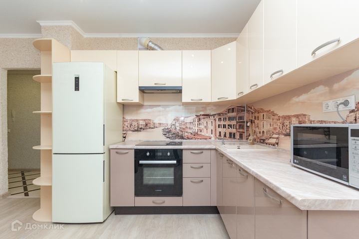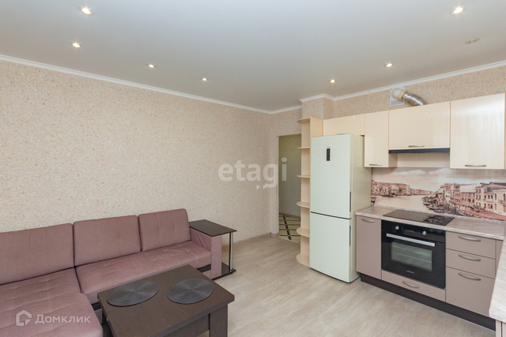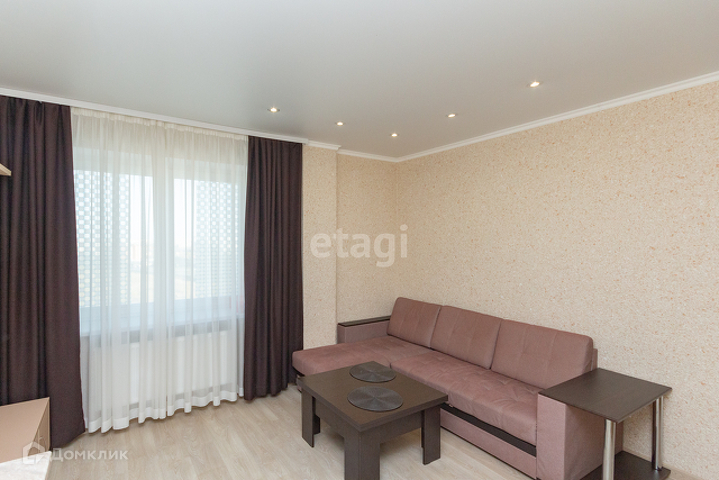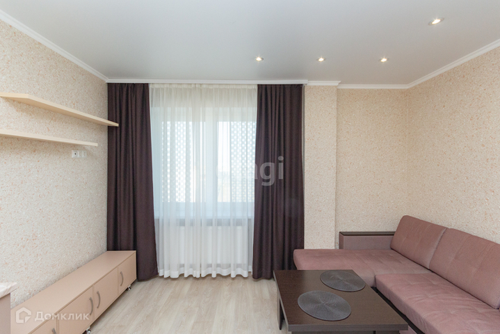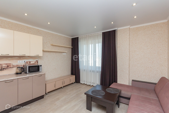 У квартиры удобная планировка, в 39 квадратах разместились большая кухня-гостиная, комната, гардеробная и совмещенный санузел. Лоджия (в площадь квартиры не входит). При этом кухня имеет квадратную форму, что позволяет разделить ее на зону готовки, обеденную группу и зону отдыха. Ремонт аккуратный, в приятных цветовых тонах, на полу ламинат.