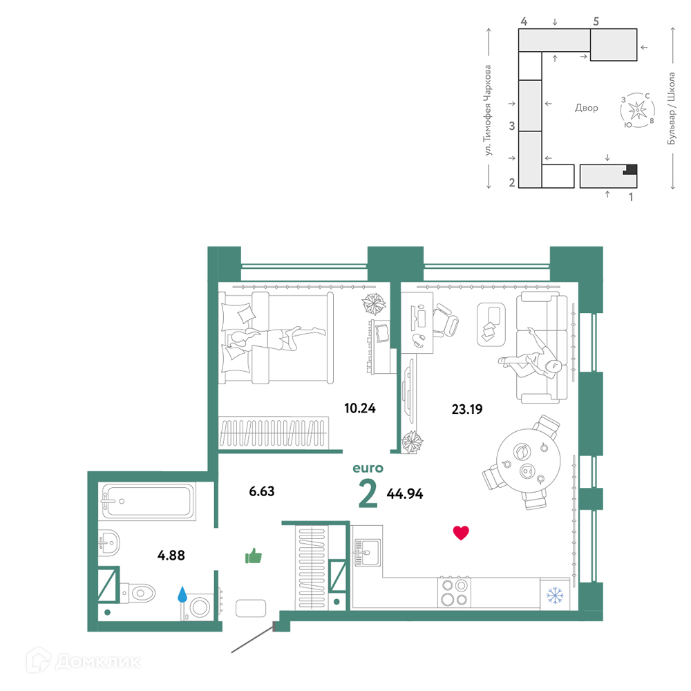 Общая площадь 45 м2