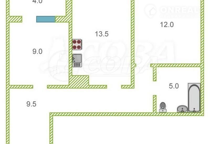Общая площадь 54 м2