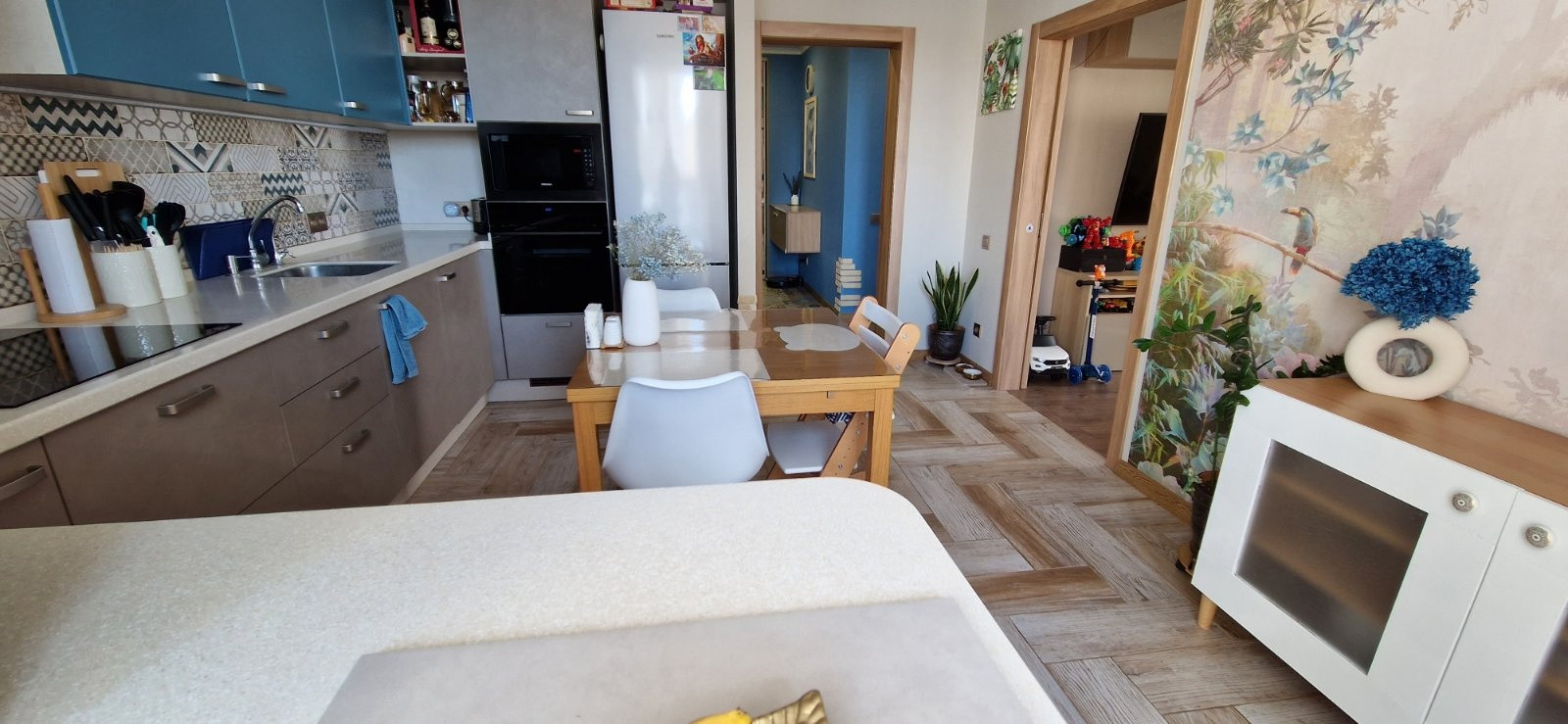 Предлагается к продаже 2х комнатная квартира в новом районе Тюменская Слобода, ЖК Клевер Парк. Закрытый двор, камеры. Дом сдан в декабре 2017 года. Просторная, светлая, уютная квартира. Солнышко будет будить своим светом в спальне. Современный дизайн. Замки на окнах, поворотно-откидные окна, антимоскитные сетки на всех окнах. Тёплый пол в ванной, на обоих балконах, на кухне. Полноценная спальня, кухня, просторная гостиная, кабинет, кладовка в квартире. Большой, удачно спланированный кухонный гарнитур.