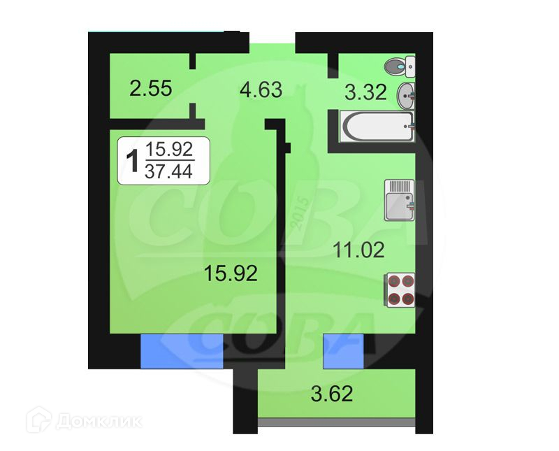 Общая площадь 38 м2