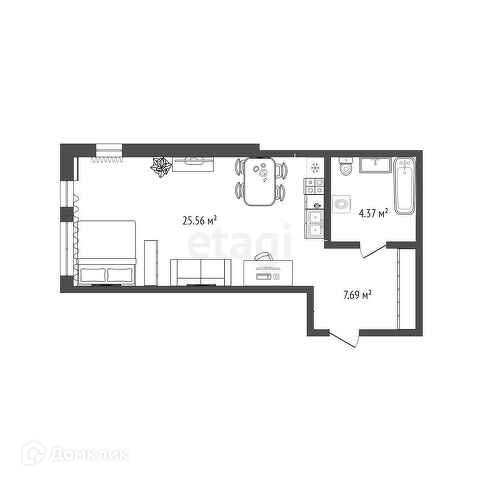 Квартира студия, 37.9 м2, этаж 2 / 19, на продажу в Тюмени, улица Тимофея Чаркова, 87