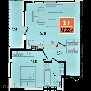 Общая площадь 47.2 м2